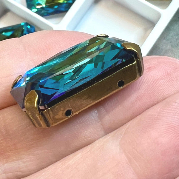 Bermuda Blue Swarovski, 1 Pc 27x18.5mm Octagon 4675 With Setting.