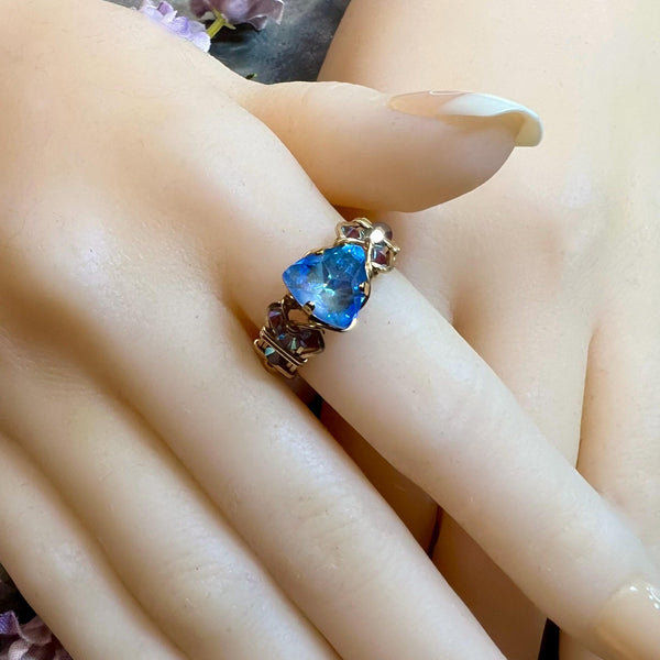 Ocean DeLite Swarovski Kaleidoscope Triangle Crystal Handmade Ring, SS or 14K GF