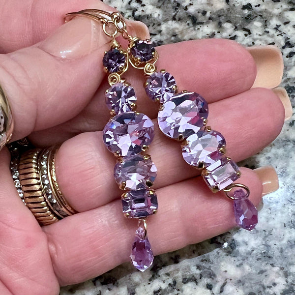 Alexandrite Dangle Earring, Vintage Swarovski Crystal handmade Earrings, made to order in Sterling Silver or 14K GF, (shown in 14K GF) approximately 3 inches long. These are made to order - please allow 2-4 days to ship.