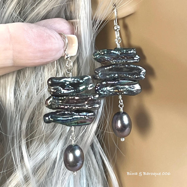 Biwa & Baroque Pearl Earrings, Multiple Color Choices, Handmade Freshwater Pearl Earring, in Sterling Silver